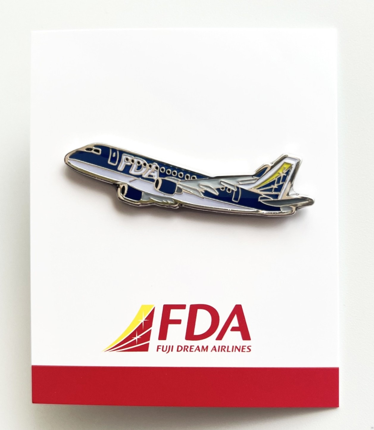 FDA機をモチーフにしたピンバッジ。